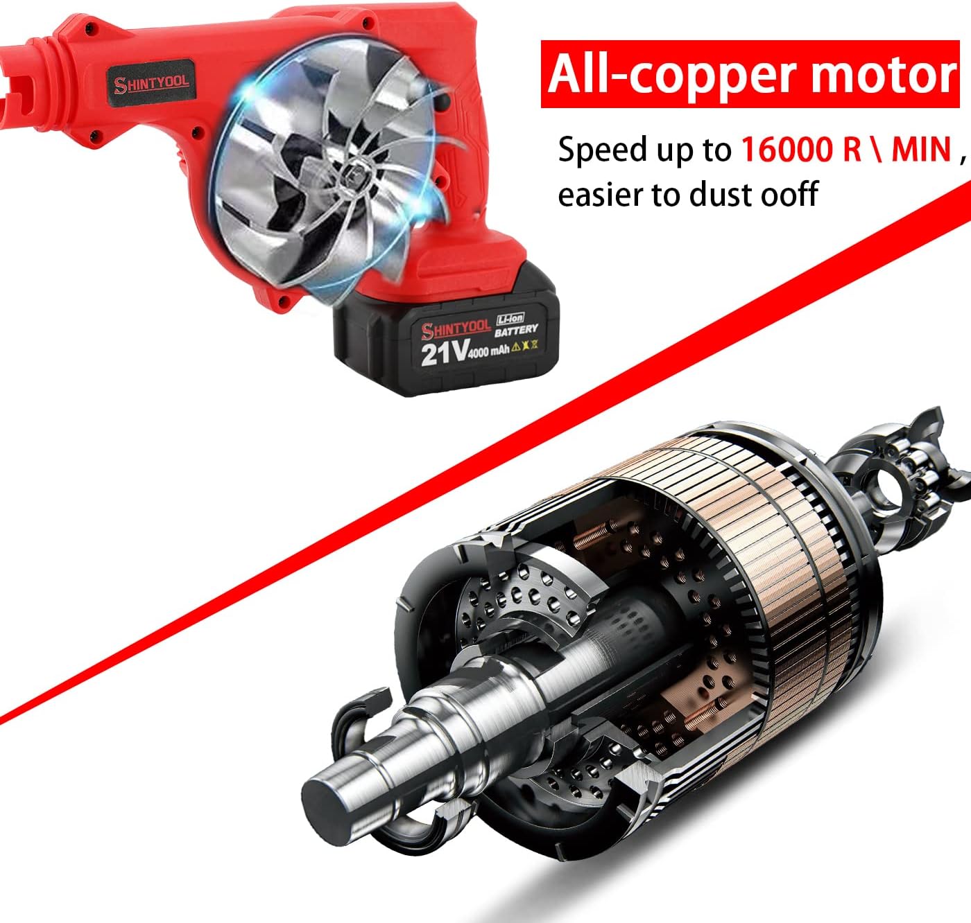 - ★【2-in-1 Blowers & Vacuums】 2 in 1 design makes electric leaf blower & vacuum can be switched at will, just enjoy the flexibility and versatility of this cordless leaf blower. It’s not only a leaf sweeper, but also a multifunctional dust & pet hair cleaner/car blower/Inflator.