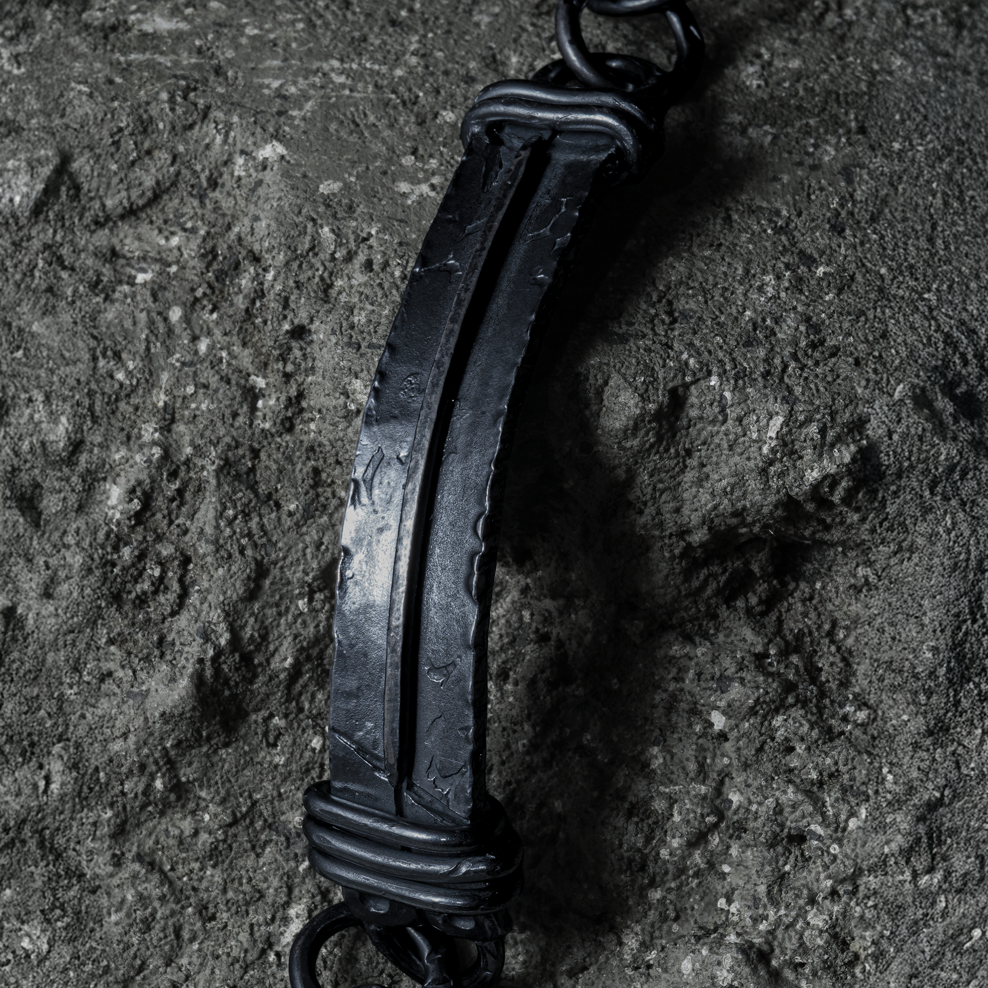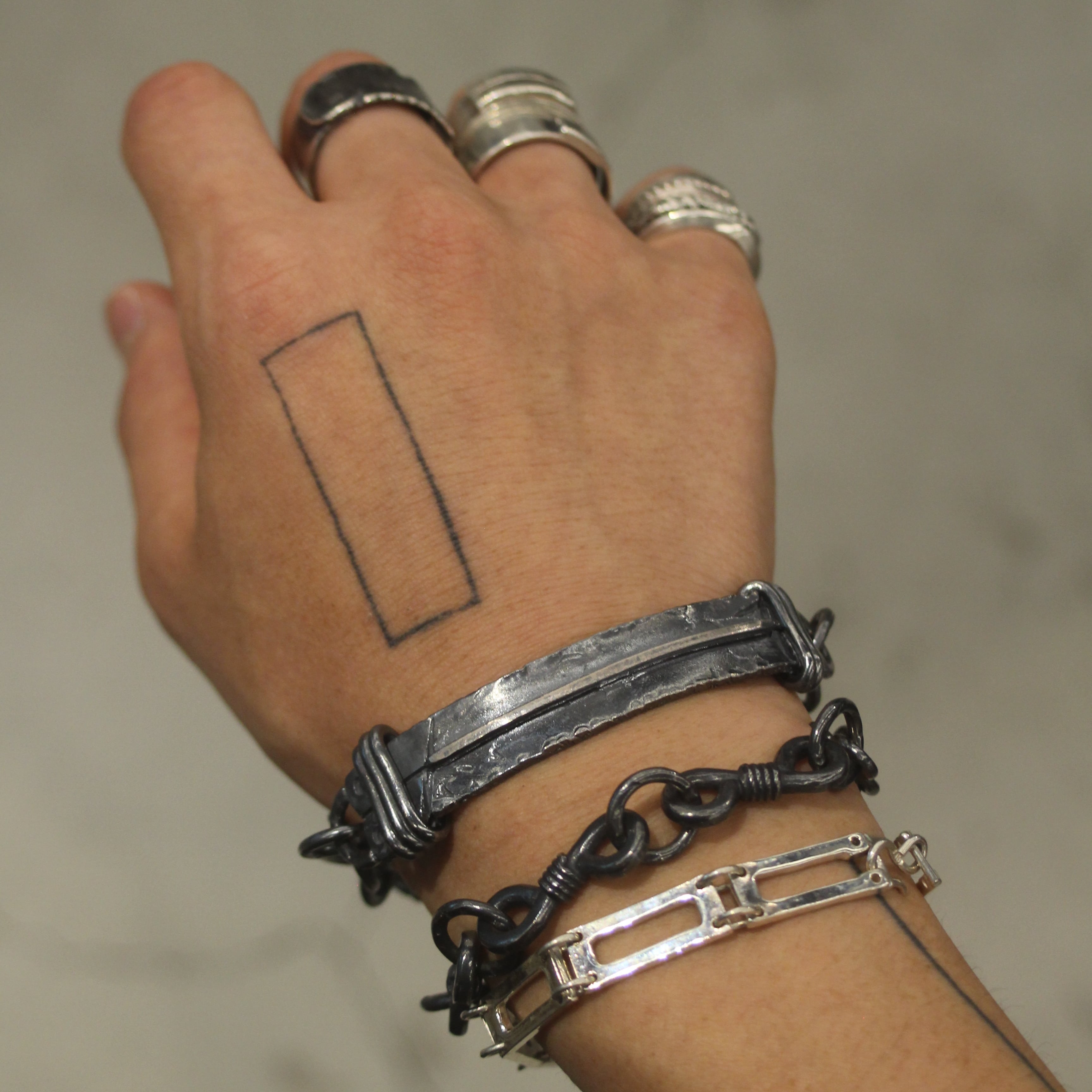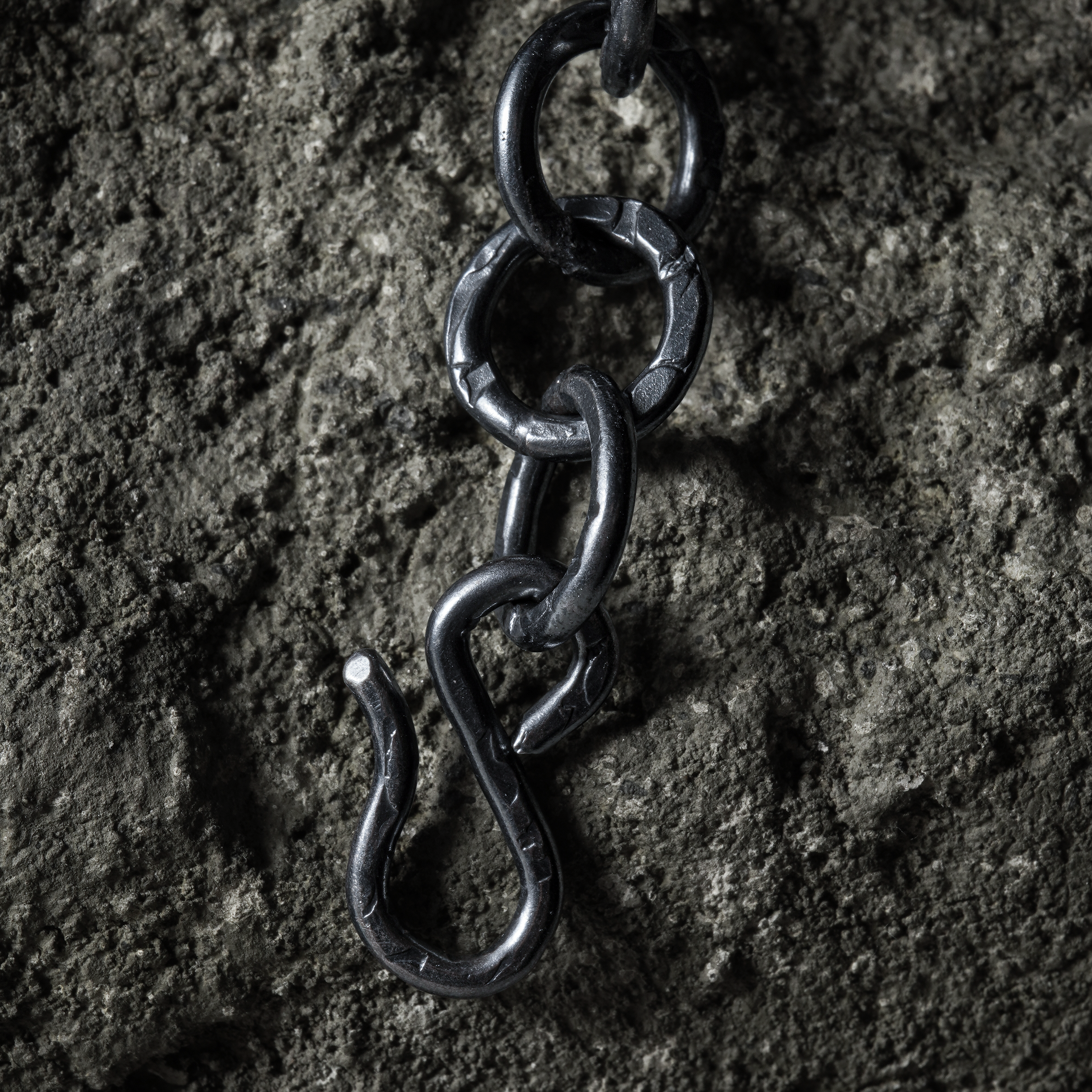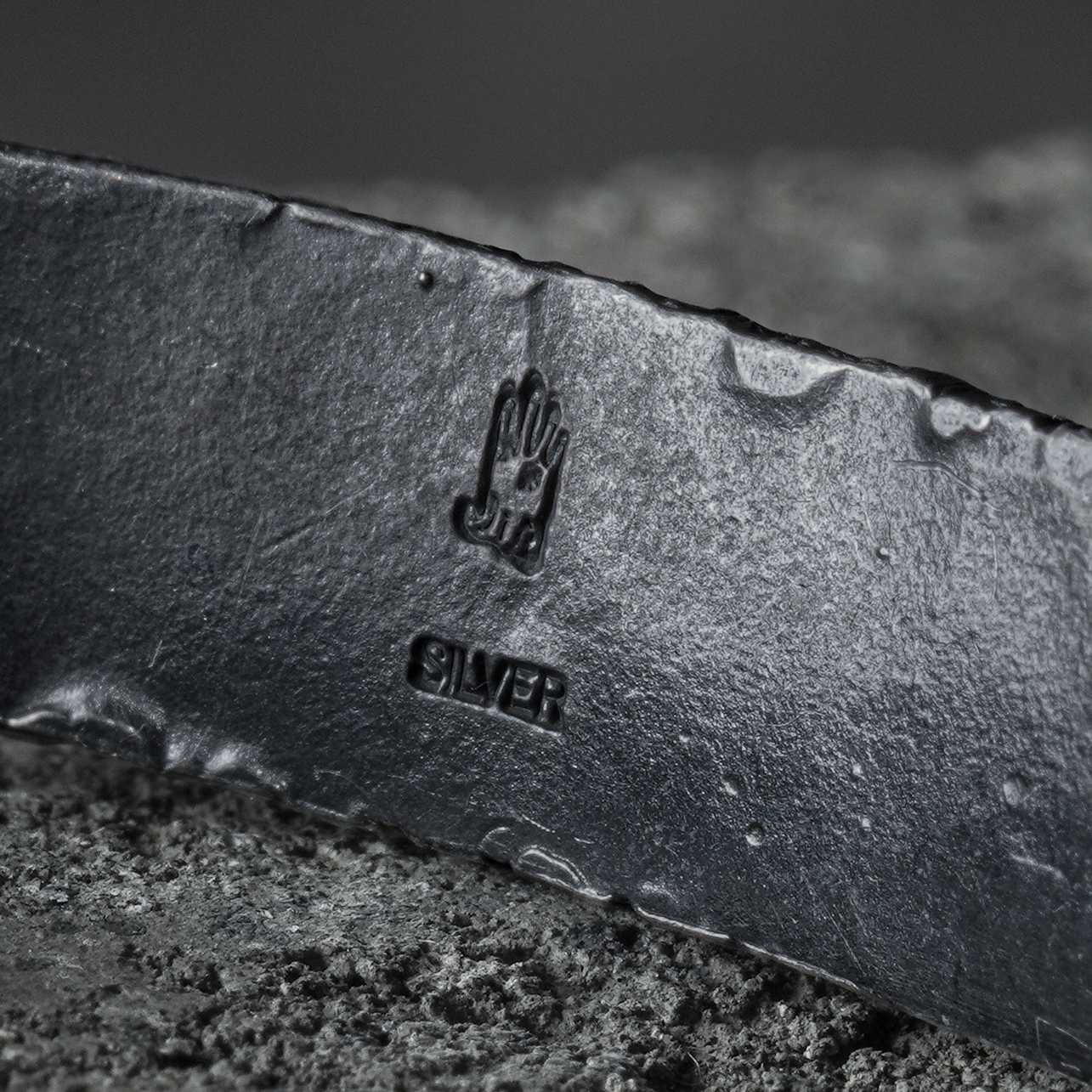 The marks of hammering and the shade of the smoke vary from piece to piece, and the more you wear it, the more the silver-specific aging process will appear, developing a one-of-a-kind look.